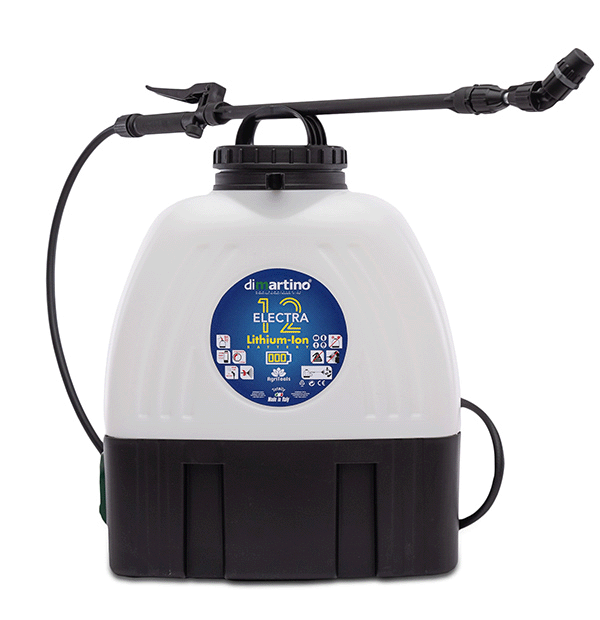 Elektrický postrekovač na vhodný pre vinárov, záhradkárov a ovocinárov. Je vhodný na postrek stromov vzhľadom na jeho výkonnosť - dostrek do výšky až 4,5 m. 5 / 6 bar. Postrekovač sa dodáva s Li-ion batériou 12 V s výkonom 7,2 Ah, s mikro-membránovým čerpadlom (maximálny prietok: 3 litre min.), ktorý umožňuje počas používania dosiahnuť hodnotu 5 bar. Má elektronický regulátor tlaku a indikátor, ktorý umožňuje skontrolovať stav nabitia batérie. Vzhľadom na tlak má efektívne a dlhodobo konštantné postrekovanie. Čas postreku je až 8 hodín, nábíja sa 4 hodiny.