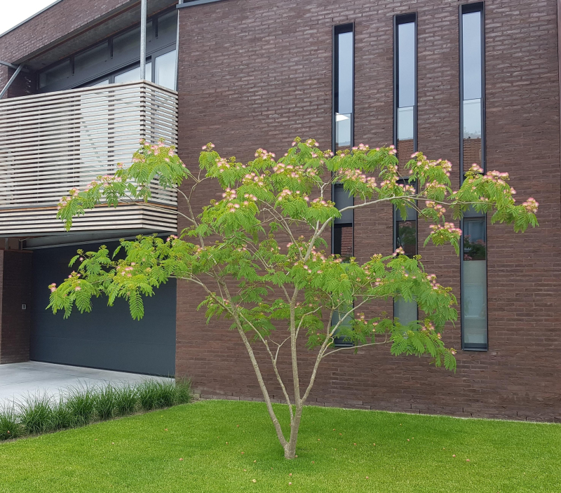 Veľmi jemné listy pripomínajúce papraď, sú hlavnou doménou tohto dážnikovitého stromu. ´Perská akácia´ sa považuje za raritu pre obdivovateľov a zberateľov exotických rastlín. Na noc a za dažďa sa listy zatvárajú. Tmavo ružové kvety s dlhými tyčinkami kvitnú na konci leta. Volíme stredne bohaté pôdy s dostatočnou priepustnosťou. Albízia obľubuje slnečné, teplé a chránené miesta. Nikdy nesmie dlhšie stáť vo vode. V zime je potrebné dobre zakôrovať.