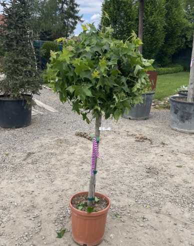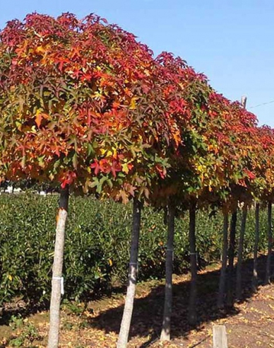 Ambrovník ((Liquidambar styraciflua) je opadavá drevina, v dospelosti statný strom, pochádza z Ameriky. Dorásť môže až do výšky 25m, ale mnohé nové a bežne predávané kultivary sú nižšie a rastú kompaktnejšie. Drevina v dospelosti zaberie šírku až 12m, to ale až po mnohých rokoch. Ambrovníky sú hodnotné a pohľadné stromy, v ideálnych podmienkach sa dožívajú vyše sto rokov. Drevina zaujme už hlboko brázdenou, šedastou kôrou – aj v zime sa tak vystavuje na obdiv. Najviac nápadné sú zvláštne korkové lišty na konárikoch a vetvičkách. Ambrovník kvitne na jar, jej kvety sú žltozelené, menšie, usporiadané do guľovitých súkvetí. Plody sú visiace pichľavé guľočky, trochu podobné plodom pagaštanov. Na drevine upútajú po opade listov, ale tvoria sa až po mnohých rokoch pestovania. Aj vďaka nim je ambrovník v zime zaujímavou drevinou. Ambrovník potrebuje chránené a slnečné miesto – dostatok svetla z každej strany. Na takomto mieste sa na jeseň krásne vyfarbí. Ideálna je preň pôda s kyslou reakciou, priepustná, mierne vlhká a málo zásobená živinami.