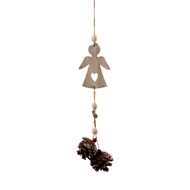 Drevená dekorácia s anjelom na zavesenie so šiškami