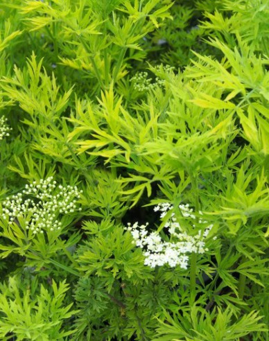 Úplne nový kultivar bazy čiernej, ktorý bol ocenený bronzovou medailou. Už samotný názov vypovedá o vzhľade tohoto kultivaru. Má zlato-zelené listy. Na jeseň sa vyfarbi viac do žlta.Kvet má biely, vzrast je stĺpovitý maximálne 80 cm na šírku. Tým že sa jedná o zlatolistý kultivar, odporúčame stanovisko mimo letných úpal.