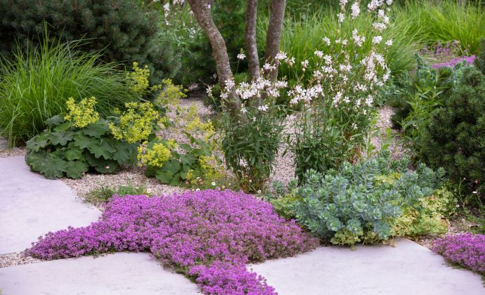 Touto kombináciou nikdy nič nepokazíme. Striedanie tejto kombinácie na ľubovolný počet metrov nám zaručí pekný trvalkový záhon, ktorý neomrzí.