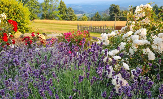 Celá kompozícia tvorí veľmi romantický efekt. Je však potrebné podotknúť, že veľkú rolu tejto výsadby hrá aj vidiecke oplotenie, ktoré je veľmi dominantné.