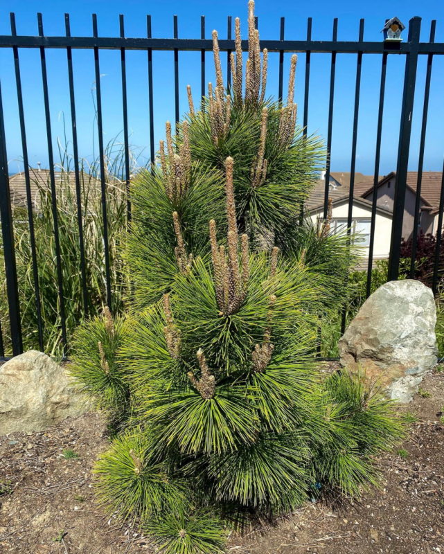 Borovica thunbergova Thunderhead je atraktívny ihličnan v tvare širokej pyramídy. Je to kultivar japonskej borovice čiernej s dlhými, tmavo-zelenými ihlicami a výraznými strieborno-bielymi šiškami, ktoré sú najzaujímavejšie neskoro v zime a skoro na jar. Za 10 rokov narastie do výšky približne 4-5 metrov a šírky asi 6 metrov. Ročný prírastok 30-45 cm. Ako všetky kultivary tohto druhu, aj tento je možné jednoducho rezom udržiavať v požadovanej veľkosti a tvare.