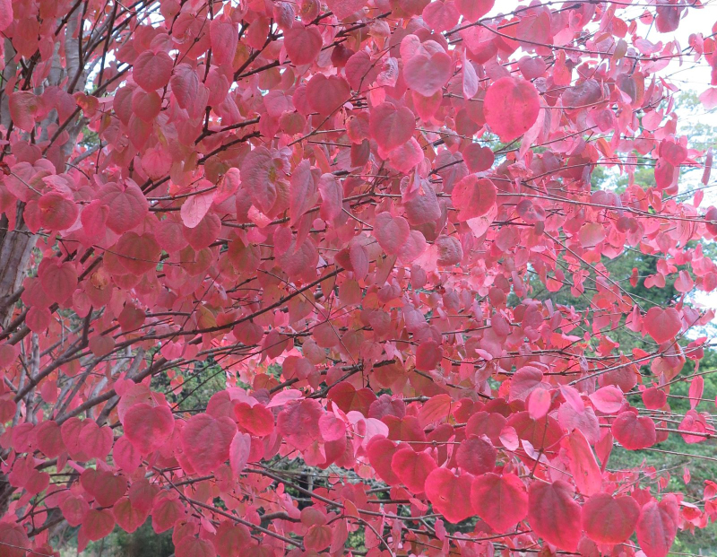 Cercidovník má stredne veľké, 10-11cm dlhé, mierne stočené, srdcovité listy stredne zelenej farby, ktoré sa na jeseň najmä vo vysoko kyslých pôdach farbia do fantastických odtieňov oranžovej a šarlátovej farby. Jeho opadané listy vydávajú omamnú vôňu cukrovej vaty.