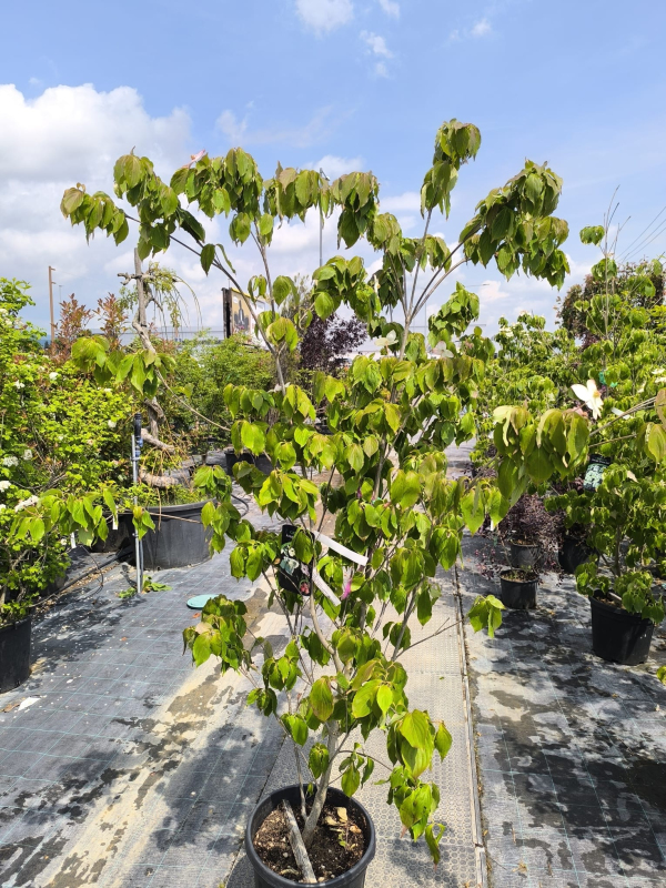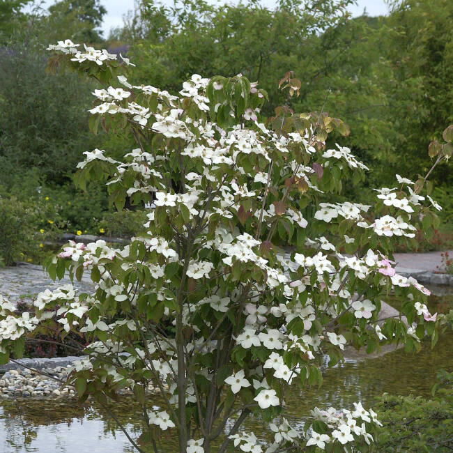 Okrasný opadavý krík, ktorý dorastá do výšky približne 6-8 m. Koruna je široko vázovitá, polootvorená a rozvetvená. Kôra a konáre majú sivú farbu. Listy sú vajcovité, zelené a mierne zvlnené. Na jeseň sa sfarbujú do žltých, oranžových a červených odtieňov. Kvetenstvo je biele a pozostáva z príveskov. Listene sa objavujú v máji a júni. V septembri sú kvety nahradené červenými bobuľami, ktoré tvarom pripomínajú jahody a sú červené až ružové. Sú jedlé, ale ich chuť je nevýrazná.