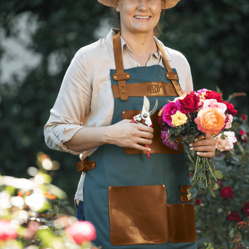 Veľmi kvalitná, praktická a pohodlná zástera FELCO 490 pre milovníkov záhradkárčenia. Či ste profesionálny alebo domáci záhradník, zásteru FELCO si obľúbite. Zástera má nastaviteľné ramienka a je navrhnutá pre pohodlné nosenie a pohyb používateľa. Na zástere je umiestnených niekoľko praktických kožených vreciek napr. pre bezpečné nosenie rýlikov, záhradných nožníc, etikiet, viazacích pások, ale tak isto na umiestnenie zápisníka s ceruzkou a mobilného telefónu.