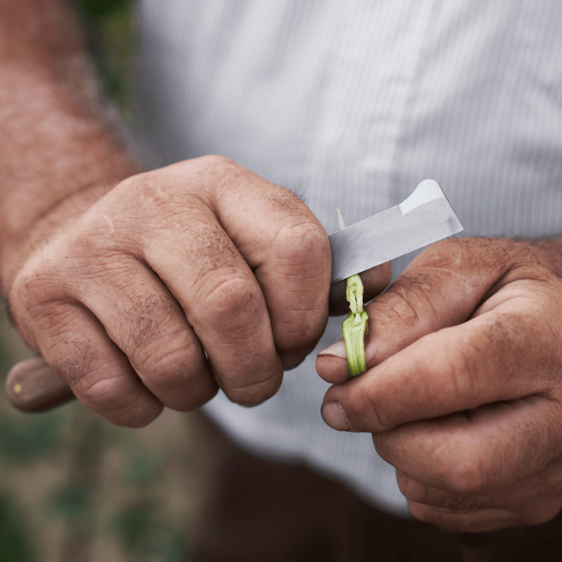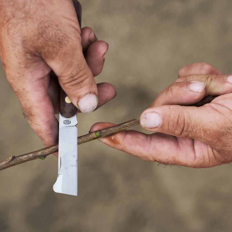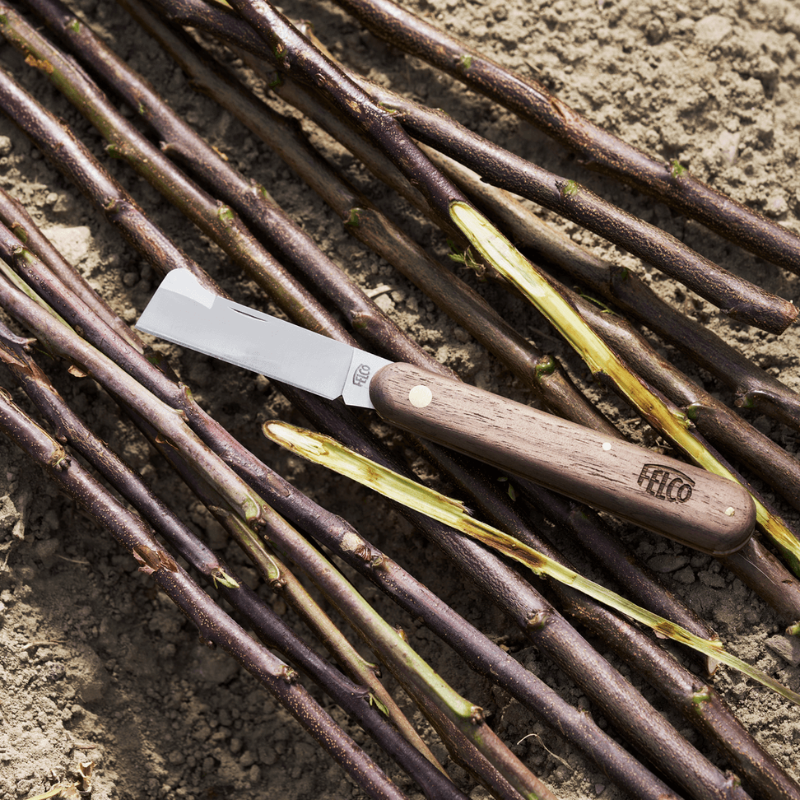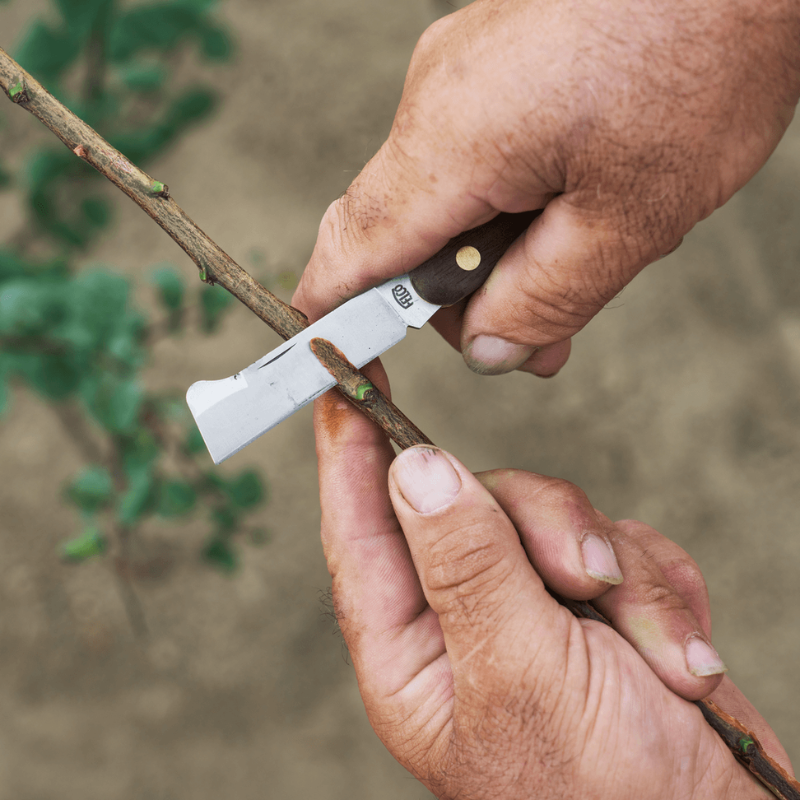 Prémiový profesionálny vrúbľovací a očkovací nôž s nadvihovačom kôry na hornej strane čepele. Vysoko kvalitná čepeľ z uhlíkovej ocele pre čistý rez a jedinečnú presnosť pri práci. Rukoväť z orechového dreva. Vnútorné mosadzné obloženie eliminuje a chráni čepeľ pred poškodením.