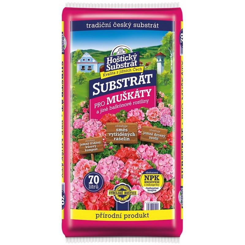 Hoštický Substrát na muškáty a balkónové kvety 70l