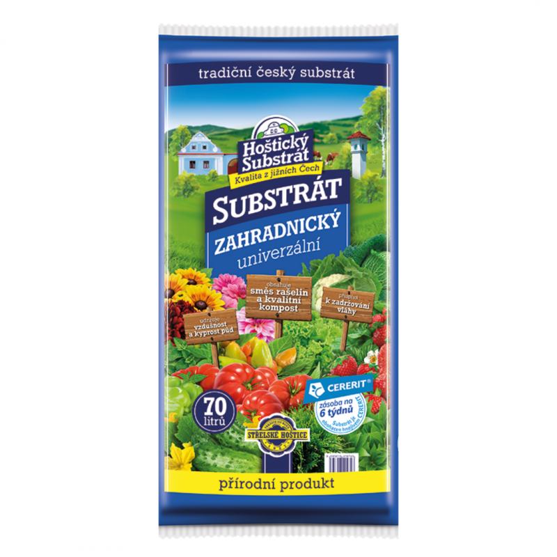 Hošticky záhradnícky substrát je vyrobený zo zmesi svetlej a tmavej rašeliny, kvalitného vytriedeného kompostu a obsahuje minerálne viaczložkové hnojivo Cererit. Vzhľadom k svojmu jedinečnému zloženiu udržuje kyprosť a vzdušnosť pôd a zaručuje tak dobrý rast, bohatú tvorbu koreňov a kvetov u všetkých druhov rastlín. Zadržiavaním slnečných lúčov umožňuje lepšie využitie tepla pre rast rastlín, urýchľuje ich zakoreňovanie a prispieva k zadržiavaniu vlahy. Záhradnícky substrát sa používa na stávkovanie kvetov a zeleniny, výsadbu okrasných i ovocných stromov a kríkov do voľnej pôdy aj do nádob. Obsahuje potrebné množstvo základných i stopových živín na prvých cca 6 týždňov pestovania.
