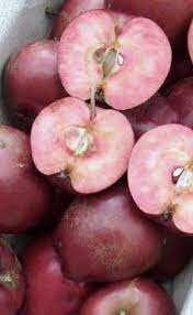 Plod: Odroda jablone s červenu dužinou, stredne veľký, sladký