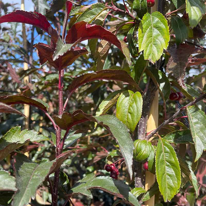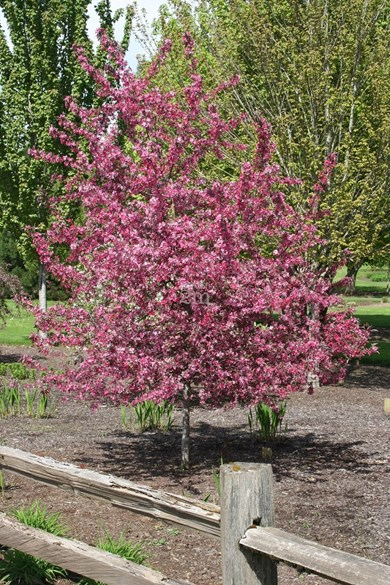 Malus ’Royal Raindrops’® - patrí medzi vyhľadávané okrasné dreviny. Je obľúbená pre svoje jemne textúrované tmavofialové listy a malé nápadné červené ´krabie jablká´. Mladé lístie raší s celistvými okrajmi a neskôr sa vyvíjajú hlboko rozdelené listy, každý s tromi hlavnými lalokmi. Na jar je strom obsypaný masou jasne purpurovo-ružových kvetov. skutočná pastva pre oči. Listy si zachovávajú svoju bohatú farbu aj počas letných horúčav a na jeseň sa strom vyfarbuje do zmesy bronzovo-červených až oranžových tónov. Drobné červené krabie jablká sa objavujú od konca leta do jesene a vzbudzujú záujem. Po opadnutí listov tvoria krásnu zimnú dekoráciu. Strom sa pestuje na slnku a znáša aj mierny polotieň, avšak farba sa najlepšie vykresluje na plnom slnku. Preferuje vlhkú, dobre odvodnenú mierne kyslú pôdu. Je veľmi odolný a prispôsobivý. Ide o stredne vysoký okrasný strom, ktorý dosahuje výšku od 5-6m a šírku od 3,5-4,5m. Je mrazuvzdorný do -34°C.