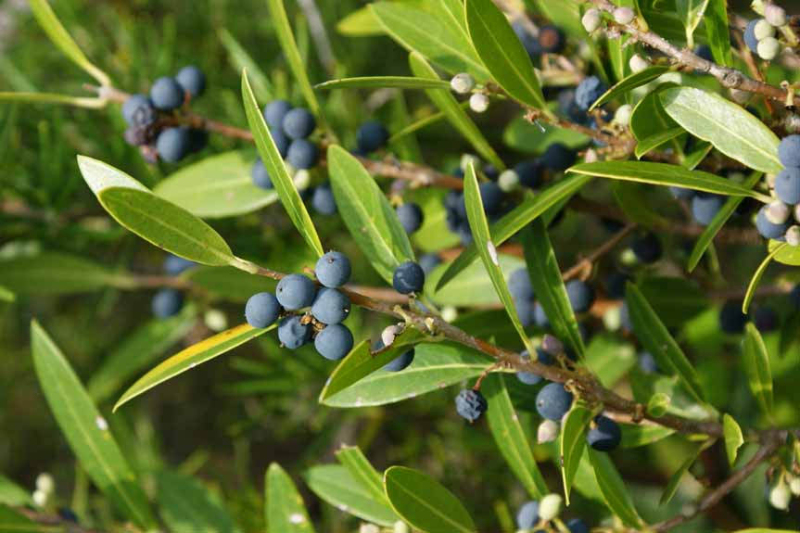 Malý, kompaktný a okrúhly krík, nazývaný aj "nepravá oliva" pre podobnosť jeho úzkych, kopijovitých, tmavozelených listov. Dorastá do výšky a šírky 3 m. Voňavé krémovo žlté kvety sa objavujú od apríla do mája.