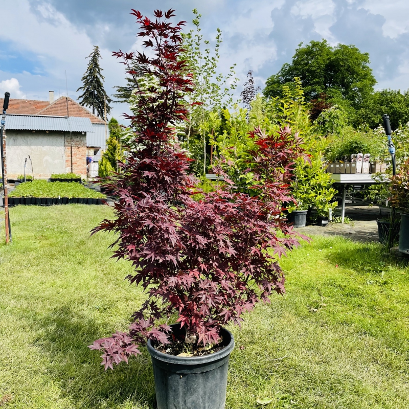 Tvorí zaoblenú korunu. Často sa používa ako solitér, na terasy, do záhonov a trávnikov. Farba listu sa na jeseň zmení na žiarivo červenú. Acer palmatum ´Bloodgood´ sa určite stane stredobodom vašej záhrady.