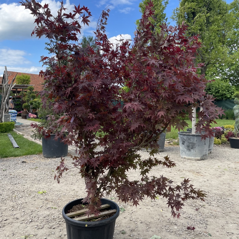 Tvorí zaoblenú korunu. Často sa používa ako solitér, na terasy, do záhonov a trávnikov. Farba listu sa na jeseň zmení na žiarivo červenú. Acer palmatum ´Bloodgood´ sa určite stane stredobodom vašej záhrady.