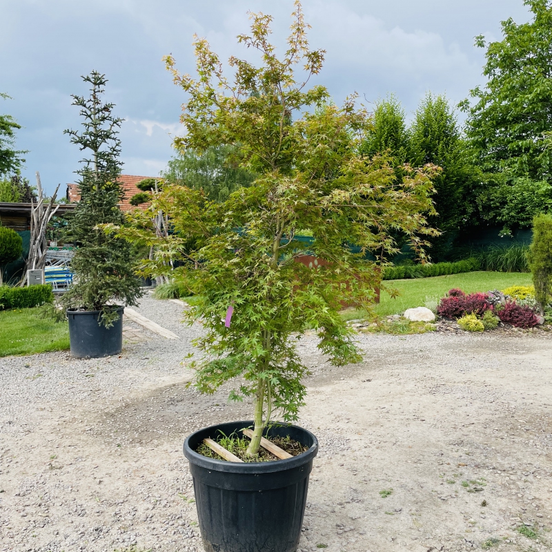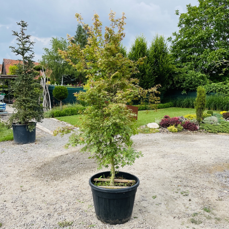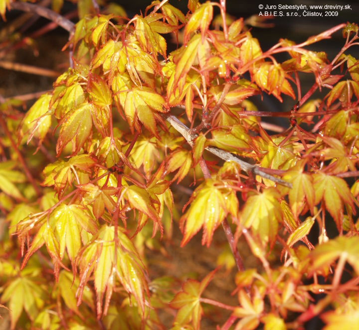 ’Katsura’ je nádherný malý strom (dorastajúci až do 4 metrov) alebo veľký ker pre menšiu záhradu, kde sa hodí výnimočný farebný akcent, ktorý vydrží takmer po celý rok. Keď sa prvýkrát objavia laločnaté listy na jar sú jasne oranžové, rýchlo sa však menia na oranžovo-žltú farbu, s ružovým okrajom. S plynúcim časom farba prechádza do sýtej zelenej, avšak na jeseň celý list znova zmení farbu a pred opadnutím získa jasne oranžový odtieň.