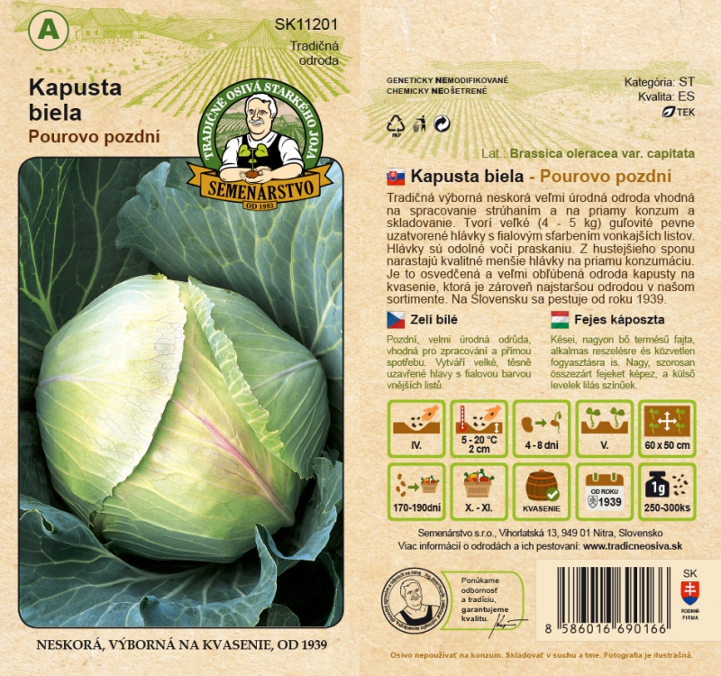Tradičná výborná neskorá veľmi úrodná odroda vhodná na spracovanie strúhaním a na priamy konzum a skladovanie. Tvorí veľké (4 - 5 kg) guľovité pevne uzatvorené hlávky s fialovým sfarbením vonkajších listov. Hlávky sú odolné voči praskaniu. Z hustejšieho sponu narastajú kvalitné menšie hlávky na priamu konzumáciu. Je to osvedčená a veľmi obľúbená odroda kapusty na kvasenie, ktorá je zároveň najstaršou odrodou v našom sortimente. Na Slovensku sa pestuje od roku 1939.