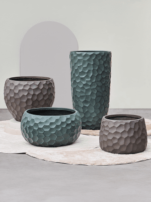 Kvetináč Baq z kolekcie Tortuga je skutočným pútačom pozornosti vďaka jedinečnému hranatému vzoru, ktorý charakterizuje túto radu. Kvetináč je vyrobený z hliny, inovatívneho materiálu pozostávajúceho zo zmesi sklenených vlákien a hliny. Vďaka tomu má kvetináč vzhľad kameňa a zároveň je jeho hmotnosť výrazne nižšia. Vďaka rebrovanej štruktúre a možnosti použitia vonku aj v interiéri ponúka tento kvetináč všestrannosť a estetiku. Je mrazuvzdorný, a preto môže zostať vonku počas chladných období bez poškodenia. Vďaka svojim vlastnostiam odolným voči UV žiareniu je kvetináč chránený pred zafarbením a poškodením spôsobeným vystavením slnečnému žiareniu. Vďaka spomaľovaču horenia je tento produkt tiež bezpečnou voľbou pre vnútorné použitie. V praxi je kvetináč vybavený drenážnym otvorom v spodnej časti, ktorý umožňuje efektívne odvádzanie prebytočnej vody.