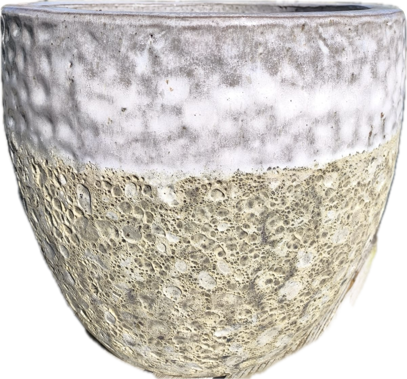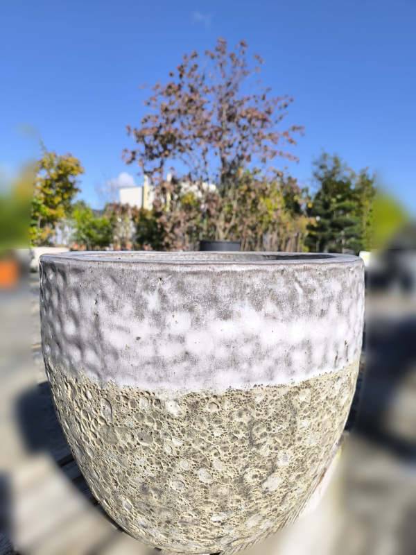 Moderný dvojfarebný keramický kvetináč s kombináciou bielej glazúry a prírodného štruktúrovaného povrchu. Vďaka svojmu štýlovému vzhľadu sa hodí do interiéru aj na terasu a je ideálny na pestovanie kvetov, tráv či menších okrasných drevín.