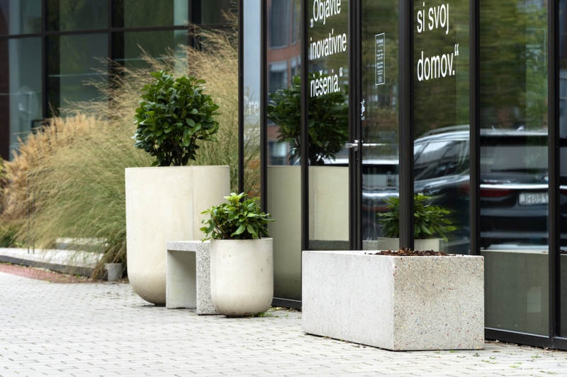 Moderný kvetináč značky Terratico je vyrobený inovatívnou technológiou, ktorá kombinuje recyklovaný plastový odpad s betónom. Výsledný materiál je ľahší, trvácny, odolný voči mrazu i UV žiareniu a zároveň šetrí životné prostredie. Skvele sa hodí do záhrad, na terasy či reprezentatívne exteriéry aj interiéry.
