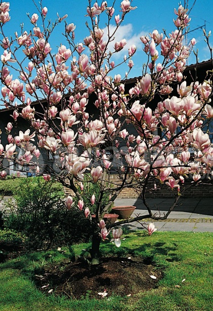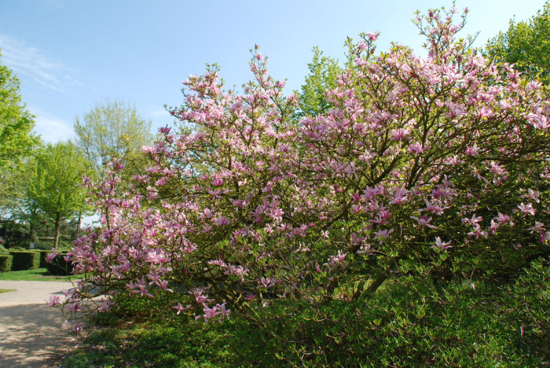 Magnolia ’Satisfaction’ - bledoružový hybrid magnólie. Ružové kvety, ktoré príjemne voňajú, sú umiestnené pozdĺž konárov. Kvitne na jar pred olistením. Listy sú lesklé, tmavozelené.