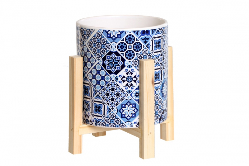 Obal s mozaikovým vzorom s dreveným stojanom.