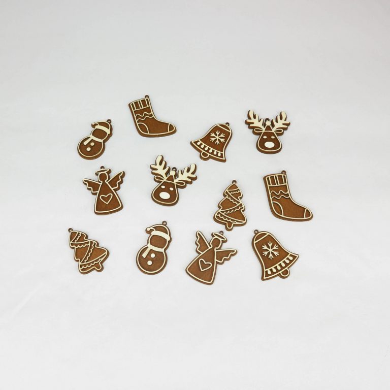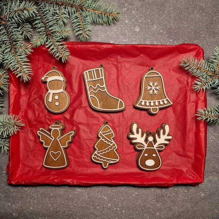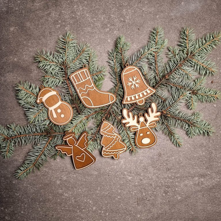 Laserom vyrezávané ozdoby vyrobené z kombinácie morenej a nemorenej preglejky.