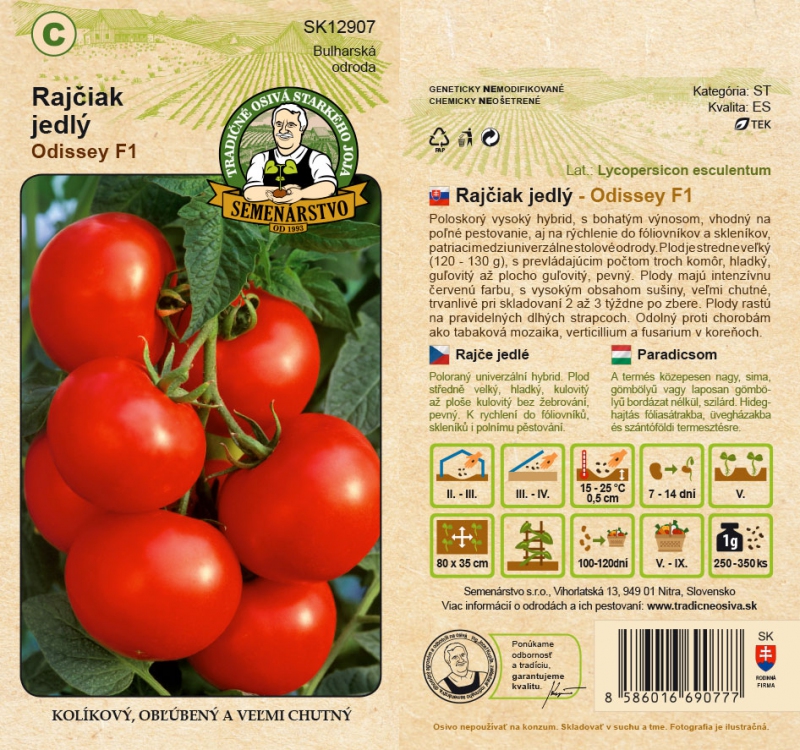 Poloskorý vysoký hybrid, s bohatým výnosom, vhodný na poľné pestovanie, aj na rýchlenie do fóliovníkov a skleníkov, patriaci medzi univerzálne stolové odrody. Plod je stredne veľký (120 - 130 g), s prevládajúcim počtom troch komôr, hladký, guľovitý až plocho guľovitý, pevný. Plody majú intenzívnu červenú farbu, s vysokým obsahom sušiny, veľmi chutné, trvanlivé pri skladovaní 2 až 3 týždne po zbere. Plody rastú na pravidelných dlhých strapcoch. Odolný proti chorobám ako tabaková mozaika, verticillium a fusarium v koreňoch. Vyžaduje rovnomernú závlahu, aby sa predišlo praskaniu plodov.