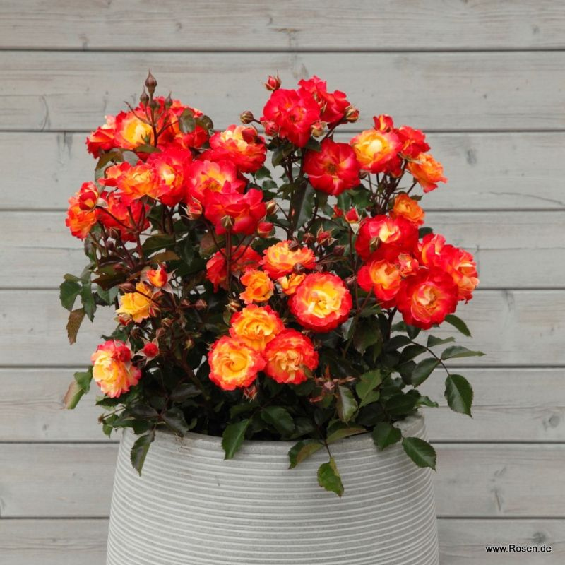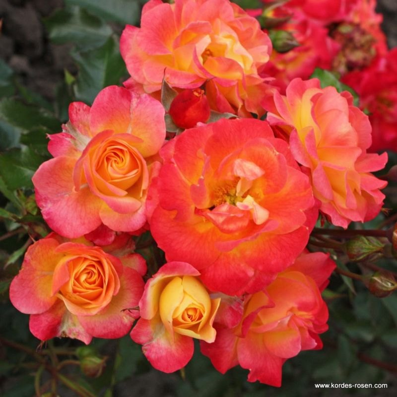 Firebird je nádherná mnohokvetá ruža v kombinácii žiarivočervenej a oranžovej, doslova budí dojem horiaceho ohňa. Ruža Firebird od Kordes kvitne opakovane ako vzpriamený ker s rastom do výšky 70cm a šírkou 50cm. Výnikajúca odolnosť voči chorobám.