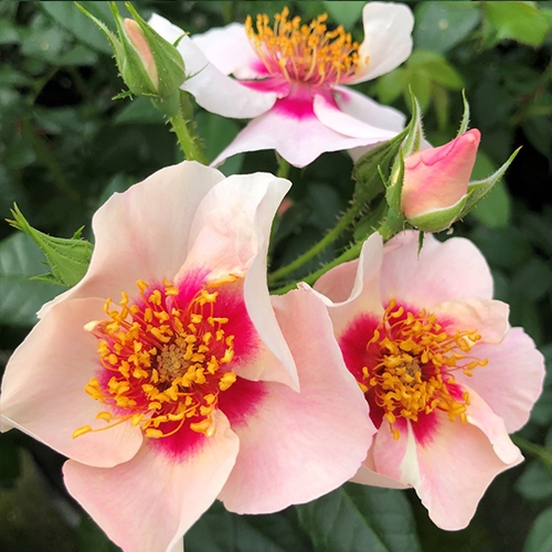 Ruža SEE YOU in red má v sebe gény ruže Rosa persica (alebo Hulthemia persica), ktoré sa vyznačujú tmavým okom uprostred kvetu. Podobných ruží sa už vyšľachtilo viac, ale táto naša vyniká perfektným zdravím a dlhým kvitnutím. Oceníte tiež jej schopnosť dobre zvládať daždivé počasie. Za slniečka ju vyhľadávajú včielky a čmeliaky a zasadajú na jej otvorené kvety.