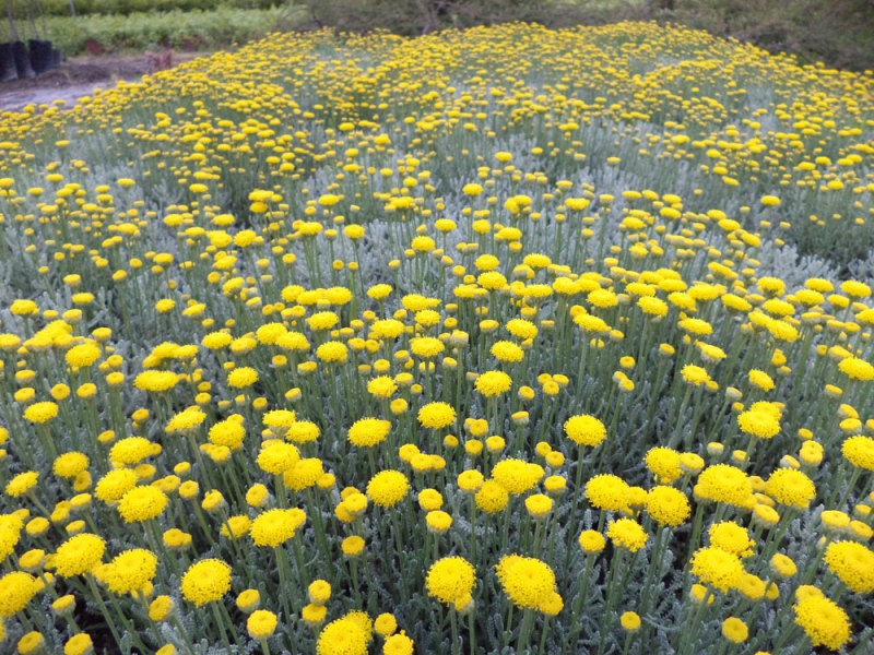Polodrevitá trvalka.Tvorí výrazné gulovité súkvetia žiarivo žltej farby.