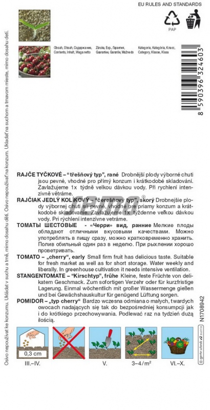 Odroda s malými plodmi s priemerom 3 – 4 cm s mierne čokoládovou farbou a výbornou sladkou chuťou. Plody utvárajú ucelený vijan plodov odolných na praskanie s dlhšou dobou skladovateľnosti. Odroda je vhodná na poľné pestovanie a pestovanie vo fóliovníkoch či skleníkoch.