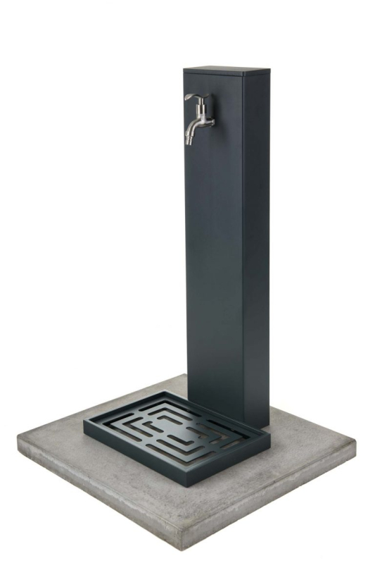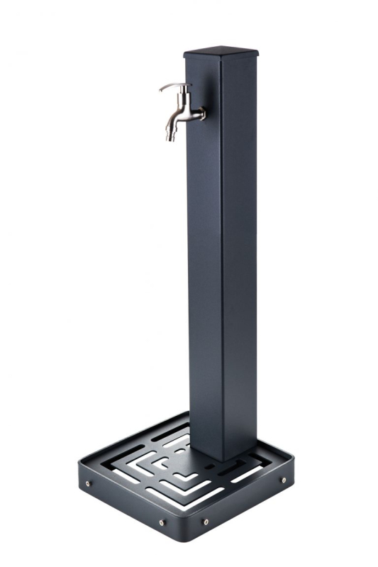 Stĺpik je vyrobený z nerezovej ocele štandardu AISI 304. Rošt a strieška zasa z veľmi masívnej čiernej ocele, ktorá bola pred farbením galvanicky pozinkovaná. Povrch je upravený vypalovanou práškovou farbou, odtieň RAL 7016 – antracit. Rošt je ku stĺpiku uchytený pomocou skrutiek. Všetky zvyšné spoje su zvárané. Kohútik je nerezový, je vybavený keramickým ventilom a závity na vstupnej aj výstupnej strane majú veľkosť 1/2″.