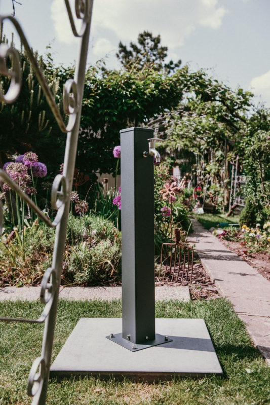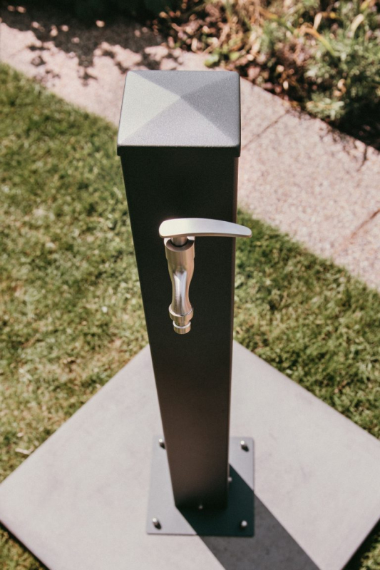 Záhradný stĺpik na vodu je vyrobený z nerezovej ocele štandardu AISI 304, ktorá je zdravotne nezávadná a vhodná na priamy kontakt s vodou. Povrch je upravený vypalovanou práškovou farbou, odtieň RAL 7016 – antracit. Všetky diely vrátane montovaných spojov a skrutiek sú z nehrdzavejúcej ocele. Kohútik je taktiež nerezový, je vybavený keramickým ventilom a závity na vstupnej aj výstupnej strane majú veľkosť 1/2″.