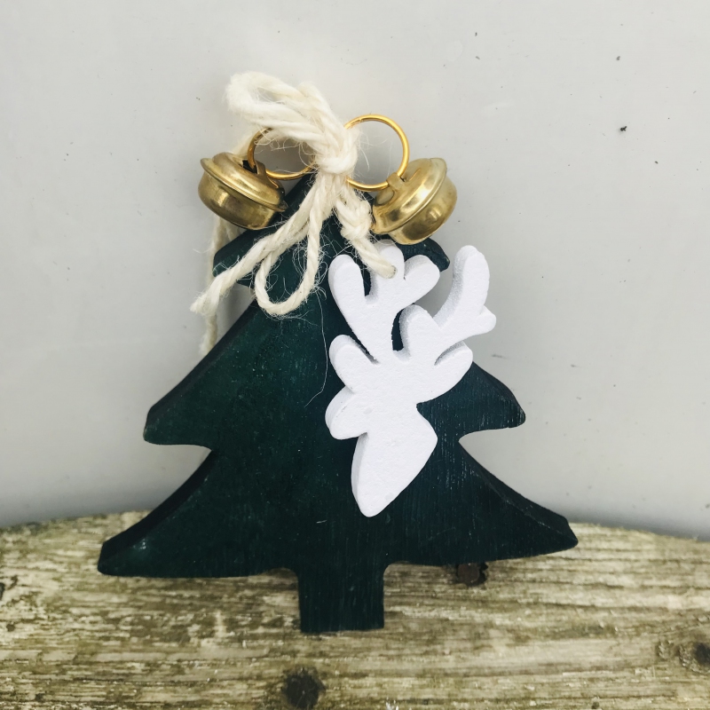 Stromček drevený dekoračný so sobom 10x8cm