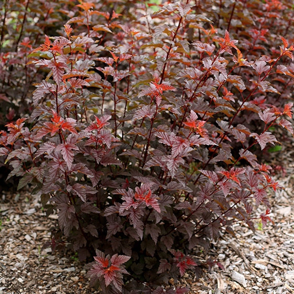Krásny okrasný ker najmä vďaka listom vínovo-červenej farby. Dorastá do výšky 1,5-1,7m. Guľovité kvety bielej farby kvitnú od mája do júna. Nenáročný na rez,vyhovuje jej slnko aj polotieň a vzdušná pôda.