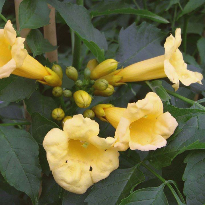 Flava je klasickým zástupcom severoamerických trubačov. Rúrkovité kvety vyzerajú ako 5-6 cm dlhé trúbky s otvoreným koncom a majú sýto žiarivo zlatožltú farbu. Opadavé listy sú veľké, svetlo zelené. Raší veľmi neskoro – koniec apríla.