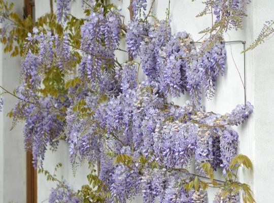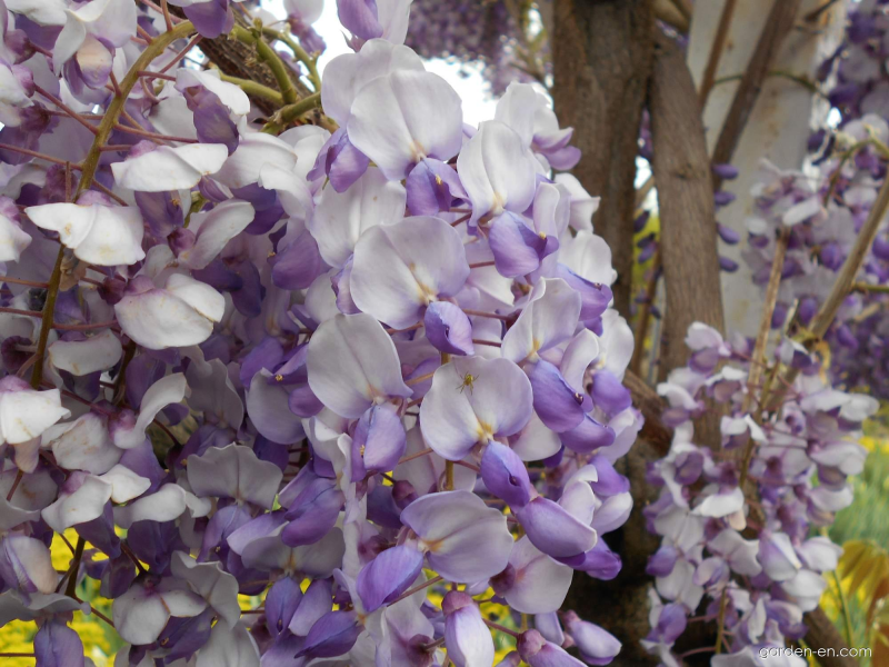 Popínavý opadavý ker, ktorý sa na jar zviditeľní svojimi veľkými žiarivými strapcami modrých kvetov s veľmi príjemnou vôňou. Ich sladká vôňa ešte viac zvýrazní jej nádheru. V období kvitnutia sa takmer úplne stratí jej svetlozelené olistenie. Voňavé kvety lákajú včely. Celá rastlina je jedovatá. Ak sa ju naučíte strihať, pokvitne ešte bohatšie - fígeľ je v tom, že kvitne na tzv. tŕňoch - krátkych výhonkoch smerujúcich do strán. Najdlhší výhon skráťte po odkvitnutí silne, postranné na 2-3 listy, v lete už len skráťte postranné tŕne rovnakým spôsobom. Kmeň sa obtáča okolo svojej opory v smere hodinových ručičiek - doprava. Je to liana a jej drevo je po mnoho rokov veľmi ohybné a potrebuje silnú oporu. Tento kultivar kvitne už ako malá, 1m vysoká rastlina.