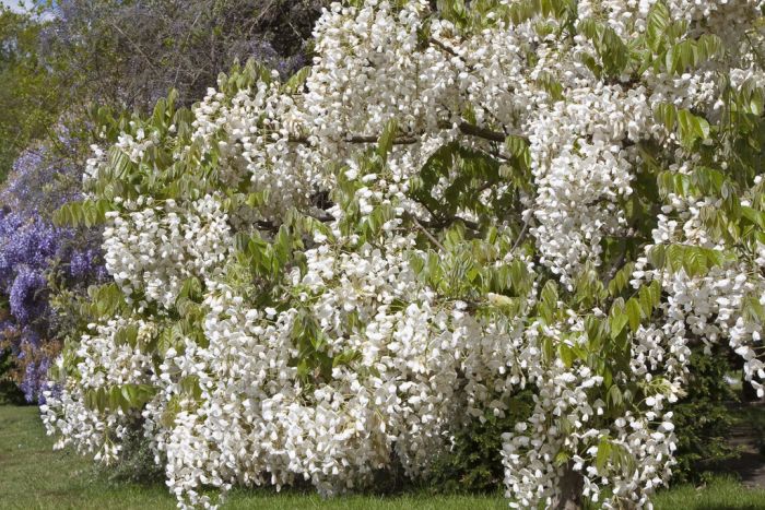 Vistéria vznešená má naozaj trefný názov. Jej kvety sú na prvý pohľad veľmi rozdielne od ostatných druhov. Tvoria bucľaté, kratšie hrozno a dokonca aj vôňu má inú a pomerne intenzívnu. Farebnosťou sa radí na prvé miesto. Odroda Shiro-kapitan (‚White Silk’) vistérie vznešenej nesie snehovo biele kvety s málo nápadným žltozeleným znamienkom. Sú usporiadané v bucľatom hrozne s dĺžkou 15-30 cm, krásne voňajú a vykvitajú väčšinou v polovici mája. Plody (semená) sú ukryté v strukoch podobných fazuliam a sú jedovaté. Husté olistenie exotického výzoru rýchlo zakryje svoju podperu. Listy sú veľké, jasne zelené a na strome vydržia dlho do zimy. Anglicky sa tejto vistérii hovorí hodvábna, pretože jej olistenie je veľmi mäkké a príjemné na dotyk.